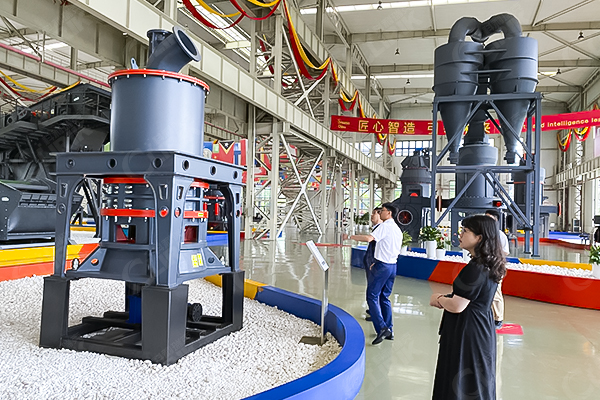 隨后帶領王總參觀了我們公司的產品展廳,并著重介紹了適合王總公司生產項目的磨粉機器——HGM超細粉磨機。HGM 超細粉磨機是我們自主研發的一款磨粉機器,一共有5種型號,可以研磨300-3000目的礦石粉末;根據不同細度,產量可達1-45 t/h,可用于非爆非易燃的非金屬礦石研磨。HGM超細磨粉機占地面積小,使用壽命長,生產效率高能耗低,操作簡單易上手,且是一款符合國際環保要求的礦石磨粉機。